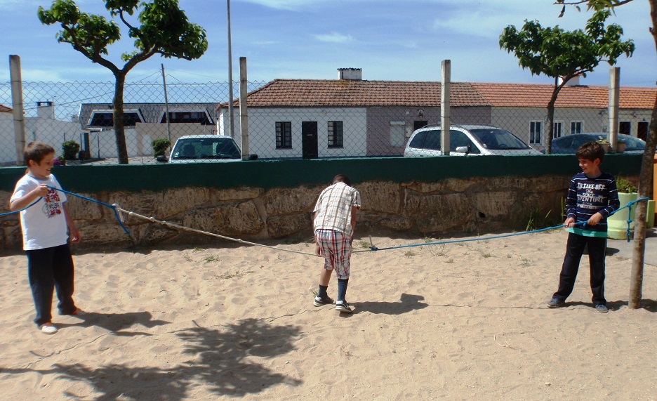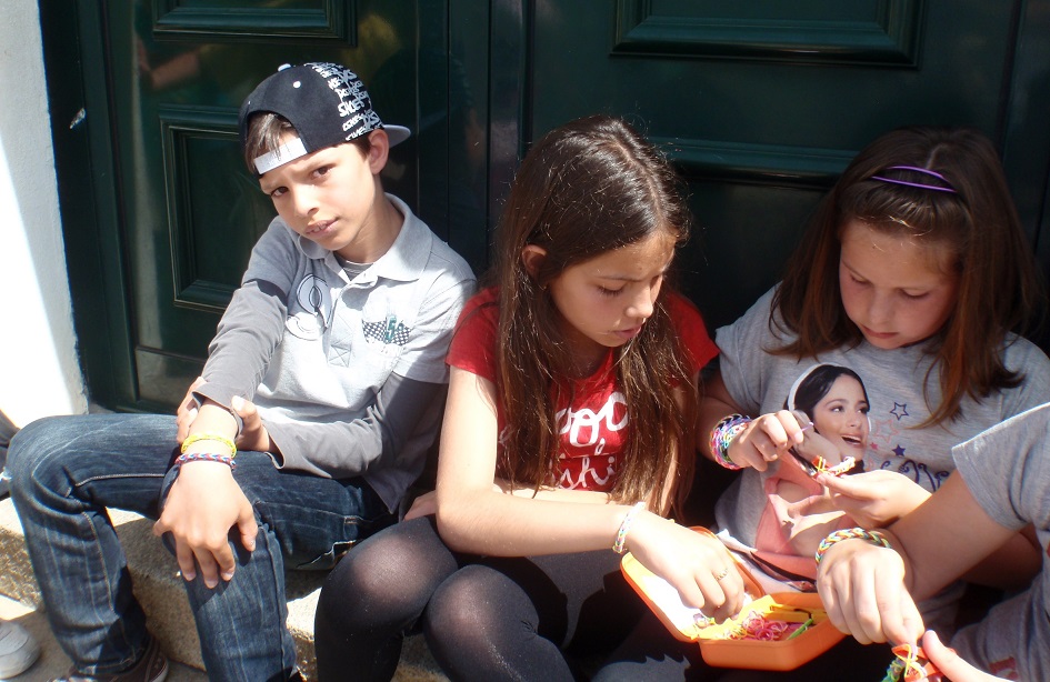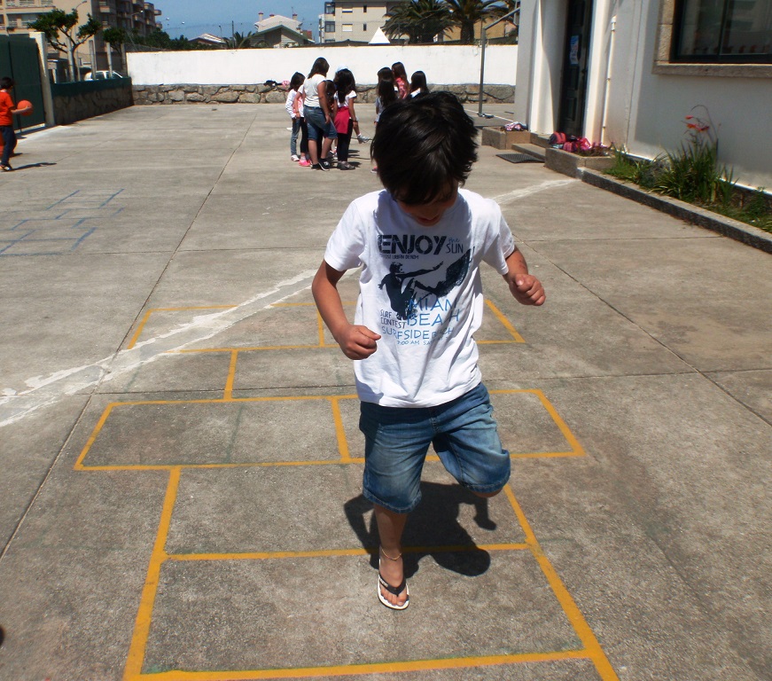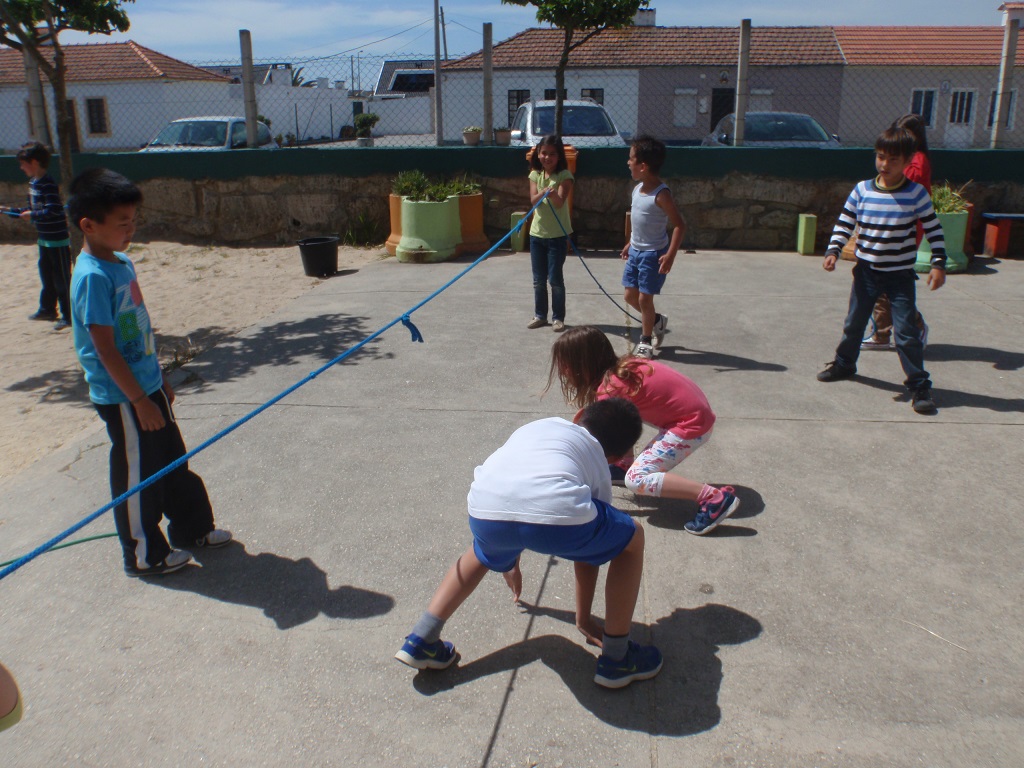 O bom tempo convida as crianças a novas aventuras no recreio e a jogos divertidos que nos fazem recordar tempos da nossa infância. Hoje divertiram-se a jogar à macaca, saltar à corda, jogar ao elástico. Também as novas tendências estiveram presentes: rapazes e raparigas a dar asas à sua criatividade, construindo pulseiras com elásticos coloridos.
