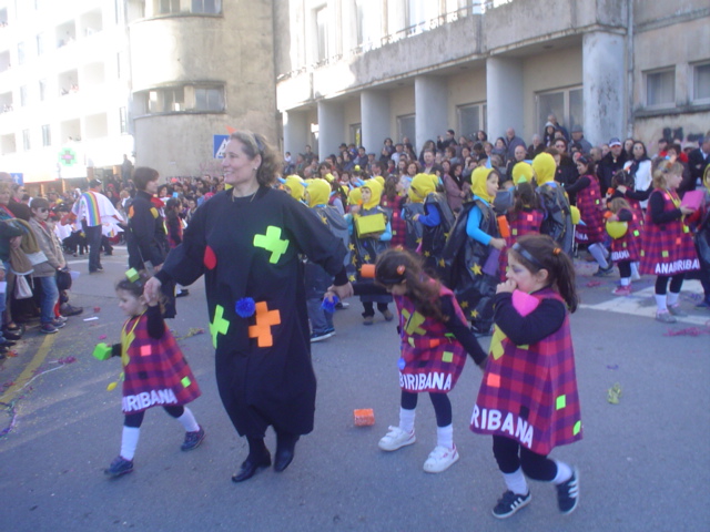 O tema escolhido foi "A Anabiribana e os sólidos geométricos", baseado na história do livro "Desarrumar" que foi alvo de estudo por todos os alunos da EB1 a propósito da visita da escritora Margarida Fonseca Santos. No desfile não faltaram muitas Anasbiribanas, fantoches e até a Dª Gertrudes.